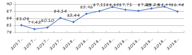圖7南山區(qū)城市交通文明指數(shù)走勢圖(計量單位:分)