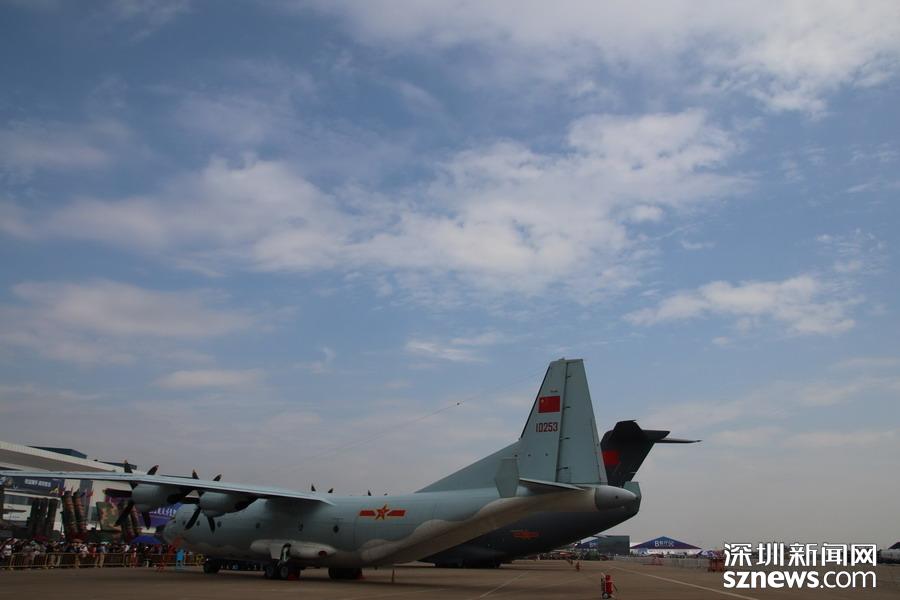 在運(yùn)-9大飛機(jī)前拍攝的觀眾