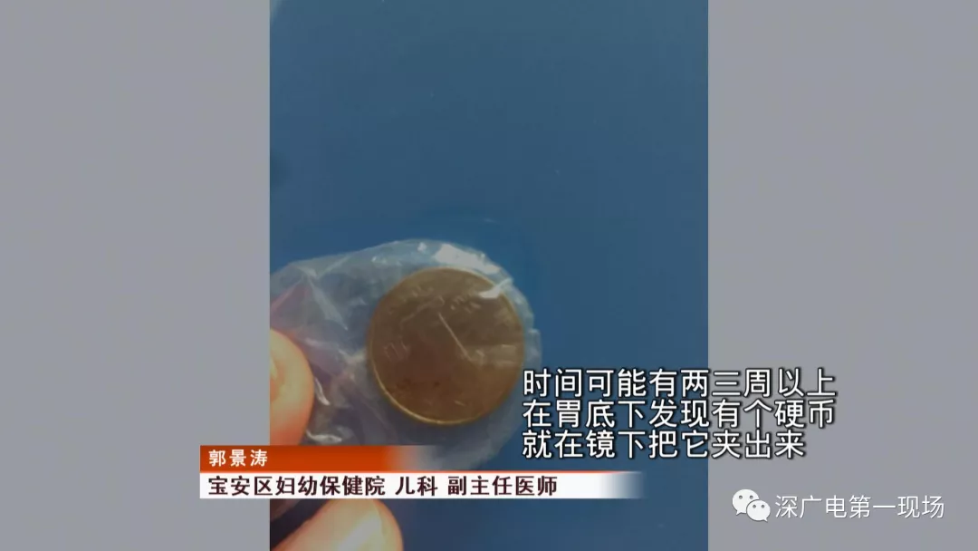 經(jīng)過兩個(gè)小時(shí)的時(shí)間,兒科醫(yī)生郭景濤為患兒取出了藏在胃底的一角錢硬幣。目前,患兒已經(jīng)痊愈出院。