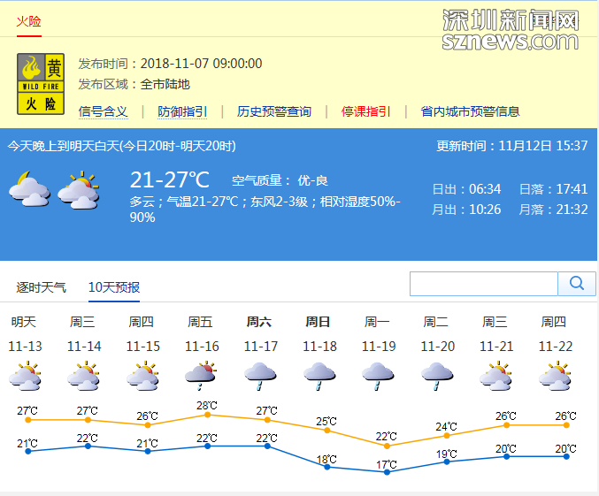 市氣象局發(fā)布未來十天天氣預報(數(shù)據(jù)更新于11月12日15時37分)