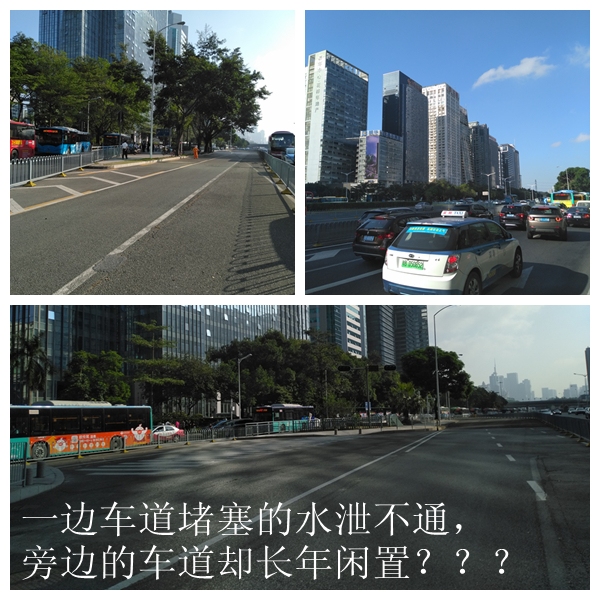 一邊是擁堵不堪的狹小道路,一邊是長(zhǎng)年閑置的車道,網(wǎng)友在公交車上看著旁邊空空如也的馬路,手表走過該打卡的點(diǎn),他又遲到了。