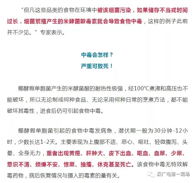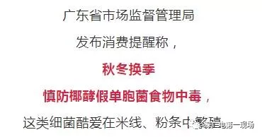 市場(chǎng)監(jiān)督管理局專(zhuān)家介紹,此季椰酵假單胞菌最易繁殖,尤其容易在三大類(lèi)食品中繁殖,包括: