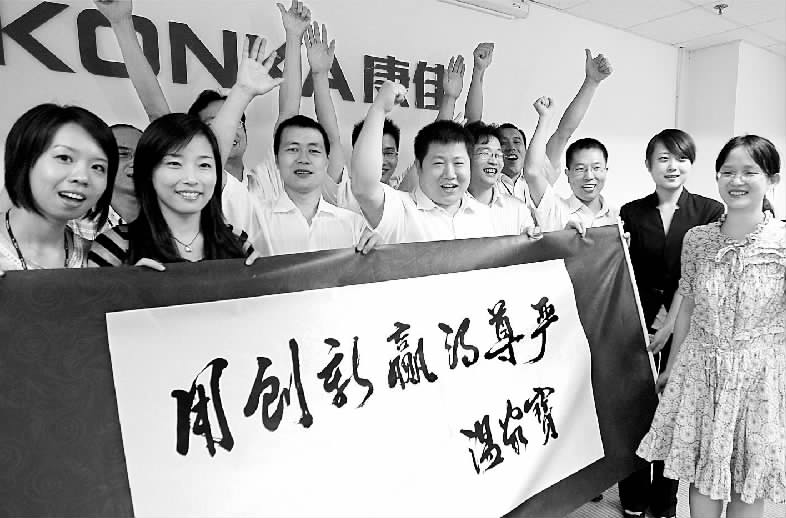 溫家寶總理為康佳集團(tuán)的親筆題詞激勵著康佳員工繼續(xù)發(fā)揚(yáng)創(chuàng)新精神!許光明 攝