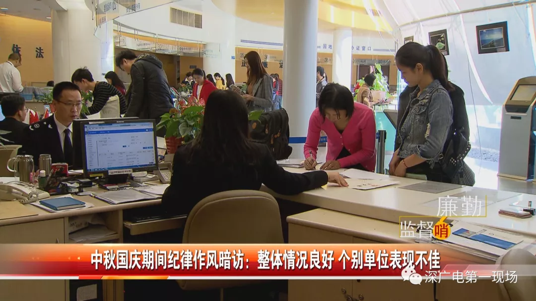 中秋、國慶雙節(jié)期間,市紀委監(jiān)委和深圳廣電集團聯(lián)合暗訪組共出動232人次,分別前往大鵬新區(qū)稅務局、大鵬新區(qū)衛(wèi)生監(jiān)督所、大鵬新區(qū)公共事業(yè)局、坪山區(qū)教育局,坪山區(qū)建筑工務局、光明區(qū)社保分局、光明區(qū)衛(wèi)生監(jiān)督所等47個市、區(qū)單位及下屬部門獨立辦公場所,進行暗訪調(diào)查。多數(shù)單位人員齊整,工作秩序井然,前來咨詢辦事的市民能夠得到及時、有效的接待服務,沒有發(fā)現(xiàn)違規(guī)收受“紅包”禮金等“四風”問題。不過,聯(lián)合暗訪組還是發(fā)現(xiàn)了個別單位存在工作紀律渙散、提前早退脫崗等問題,作風存在軟、松、散情況。