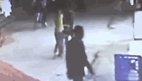 將小月按倒在地后,一名成年男子對著孩子的頭部打了五拳,看到圍觀市民越來越多,男子帶著身邊的男孩離開。