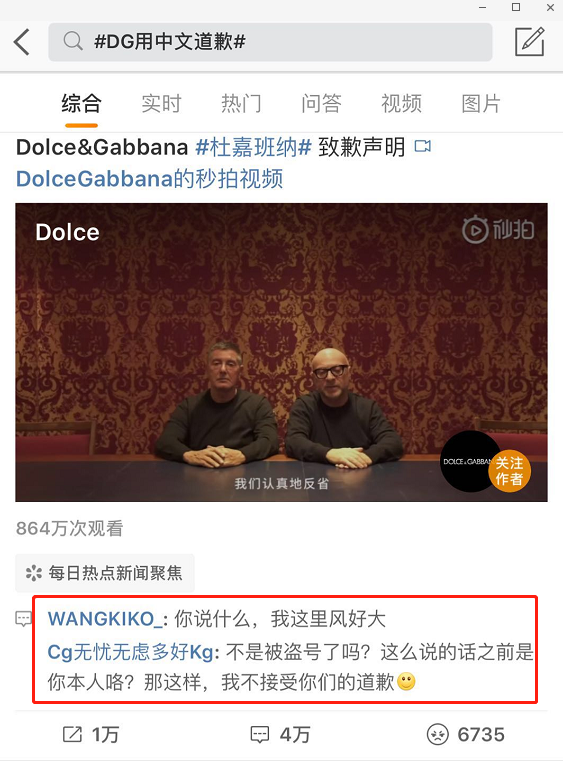 然后,D&G官方迅速出來回應說:賬號被盜