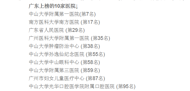 廣東省有10家醫(yī)院上榜