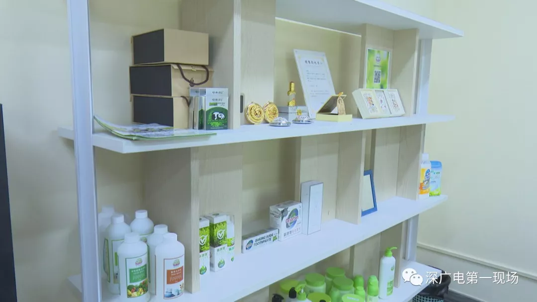 隨后執(zhí)法人員兵分多路,對這家福代代公司進(jìn)行檢查,其中一路執(zhí)法人員來到會議室,發(fā)現(xiàn)有不少的產(chǎn)品擺放在展示架上,其中有記者暗訪時(shí)看到的各種所謂的“能量”產(chǎn)品,還有一部分產(chǎn)品全部是一些洗滌用品,各式各樣,五花八門。執(zhí)法人員在檢查中發(fā)現(xiàn)展示架上的一些傳單,存在問題。