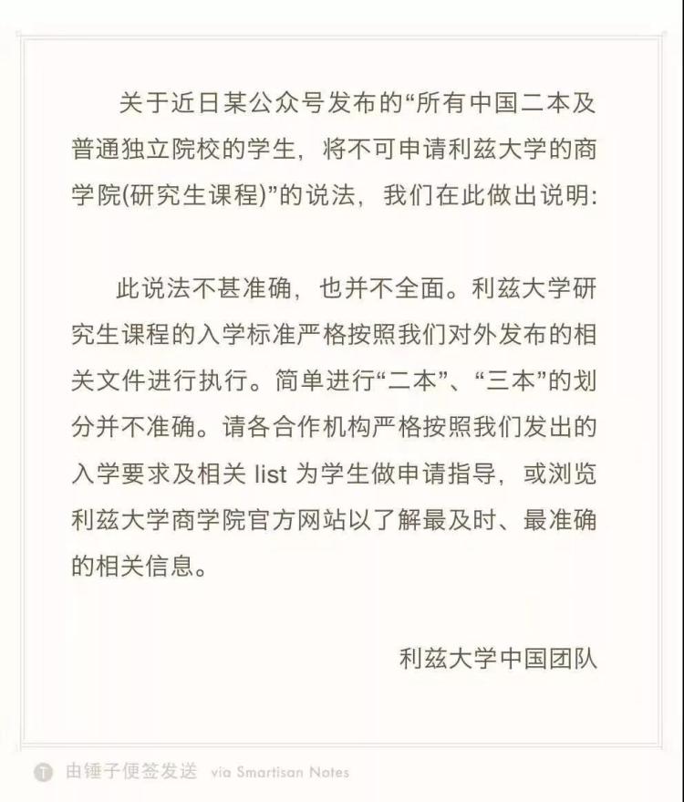 網(wǎng)文中說,布里斯托大學、杜倫大學、利茲大學、曼徹斯特大學、倫敦瑪麗女王大學、謝菲爾德大學、格拉斯哥大學、諾丁漢大學8所英國大學聯(lián)合發(fā)布信息,表示明年開始不再接受部分中國學生的申請。文中還一一列舉了8所高校的申請門檻:布里斯托大學,學校的經(jīng)濟金融管理學院申請不接受來自安徽大學、大連海事大學、福州大學等24所中國大學學生;諾丁漢大學,全面上調(diào)來自中國211/985大學的學生,進入該校商學院的分數(shù),均分要求80%以上;倫敦瑪麗女王大學不接受所有非中國985/211的學生……