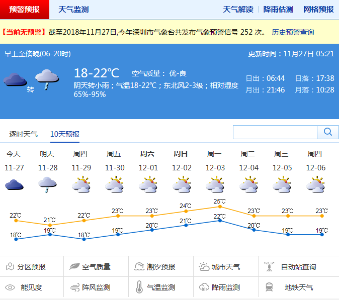 深圳新聞網(wǎng)11月27日訊(記者 陳婕)一場(chǎng)秋雨一場(chǎng)寒,市氣象臺(tái)預(yù)測(cè),未來幾日秋雨綿綿,氣溫為17-22℃,下雨時(shí)能見度較低,出行注意安全。