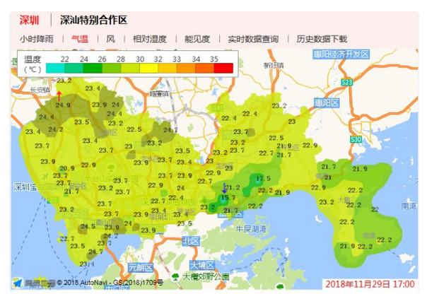 近期深圳天氣不穩(wěn)定,冷暖天氣交替切換頻道。預計未來一周天氣平穩(wěn),其中30日到12月2日多云,可見陽光,早晚清涼,部分時間有輕霧,30日氣溫18 ℃ ~25 ℃;另外,12月3日 ~12月6日濕度上升,間中有零星小雨,氣溫小幅波動。