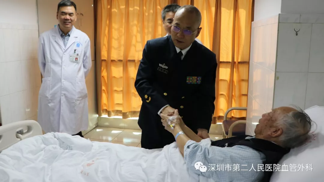 座談會結(jié)束后,景在平教授、趙永勝副院長與科室醫(yī)護(hù)人員一起,進(jìn)行了床邊臨床教學(xué)查房,同時為一位腹主動脈瘤疾病患者會診。患者是抗美援朝老英雄(享受軍級待遇),因發(fā)現(xiàn)腹主動脈瘤(俗稱“不定時炸彈”)后,一直深受該疾病困擾,一度不愿意接受治療。經(jīng)過景在平教授詳細(xì)講解后豁然開朗,同意接受治療,并要求在景在平教授團(tuán)隊(duì)及朱國獻(xiàn)主任團(tuán)隊(duì)下進(jìn)行手術(shù)治療。會診結(jié)束時,老先生緊緊握住景在平教授的手,萬分感激。