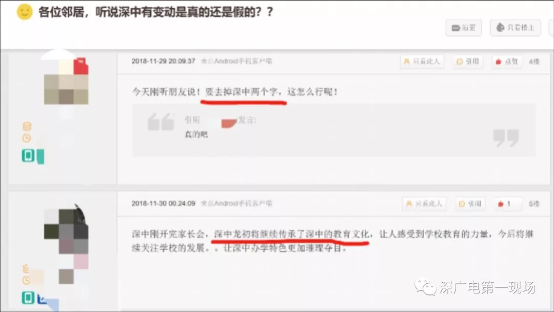 據(jù)了解,從11月底開始,深圳中學(xué)將撤離龍崗的消息就在網(wǎng)絡(luò)上不脛而走,學(xué)區(qū)內(nèi)的業(yè)主在得知這個(gè)消息后,有些不知所措,紛紛通過(guò)各種渠道打聽消息,有些業(yè)主直接找到龍崗區(qū)教育局求證。