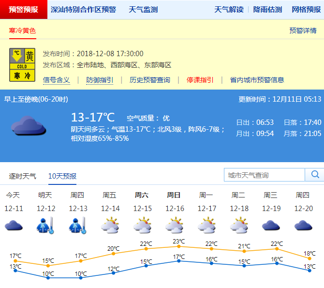 市氣象局發(fā)布未來十天天氣預報(數(shù)據(jù)更新于12月11日5時13分)
