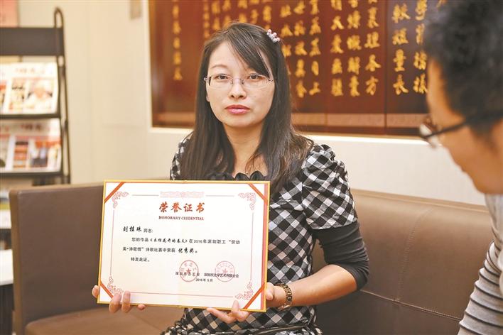 “近期,我剛剛加入了深圳市福田區(qū)作家協(xié)會(huì)?!眲⒐鹬楦嬖V記者,她從高中的時(shí)候就喜歡寫(xiě)作。“后來(lái),我來(lái)深圳打工之后,不管工作多忙多累,這個(gè)愛(ài)好都沒(méi)有間斷過(guò),一直堅(jiān)持到現(xiàn)在。它已經(jīng)成為我生命中的一部分了,可以說(shuō)是一種生活習(xí)慣?!?/p>