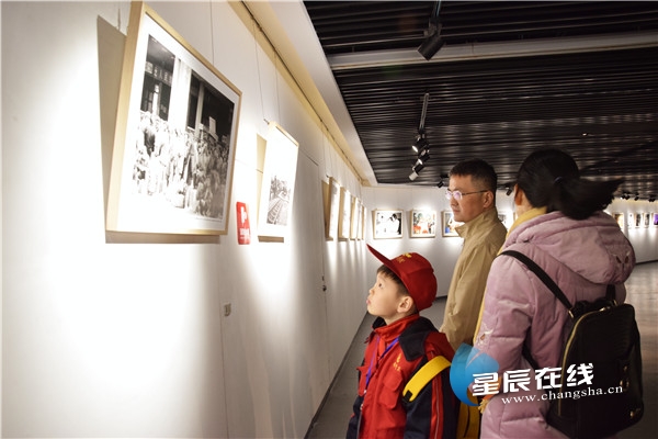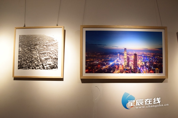 (現(xiàn)場通過一幅幅新舊對比的新聞攝影圖片,展現(xiàn)長沙改革開放40年來的輝煌成就。)