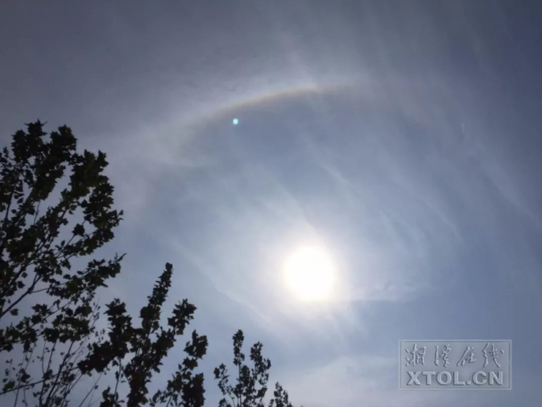 8月8日上午9時(shí)20分左右,蓮城上空出現(xiàn)與彩虹相似的日暈。(記者 方陽 攝)