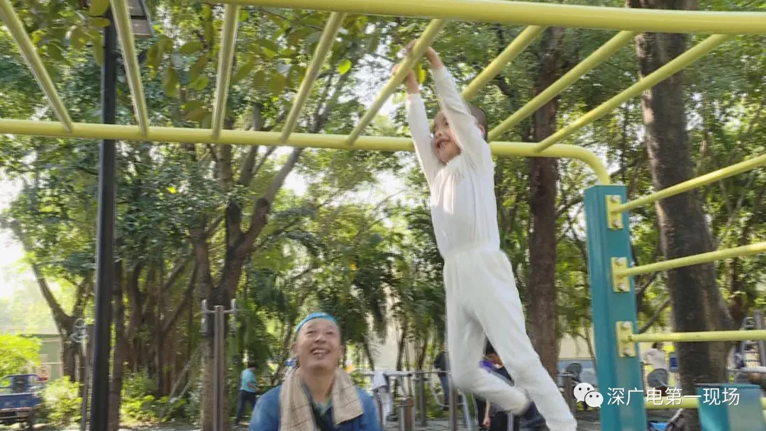 孩子的父親袁先生則擔(dān)任教練的角色,一邊為兒子加油打氣,一邊小心翼翼地看護(hù)著孩子的安全。因?yàn)樵绯恳呀?jīng)進(jìn)行了一個(gè)多小時(shí)的訓(xùn)練,還沒緩過勁兒,曉曉在健身云梯上攀爬行走了20個(gè)來回,終于頂不住了。