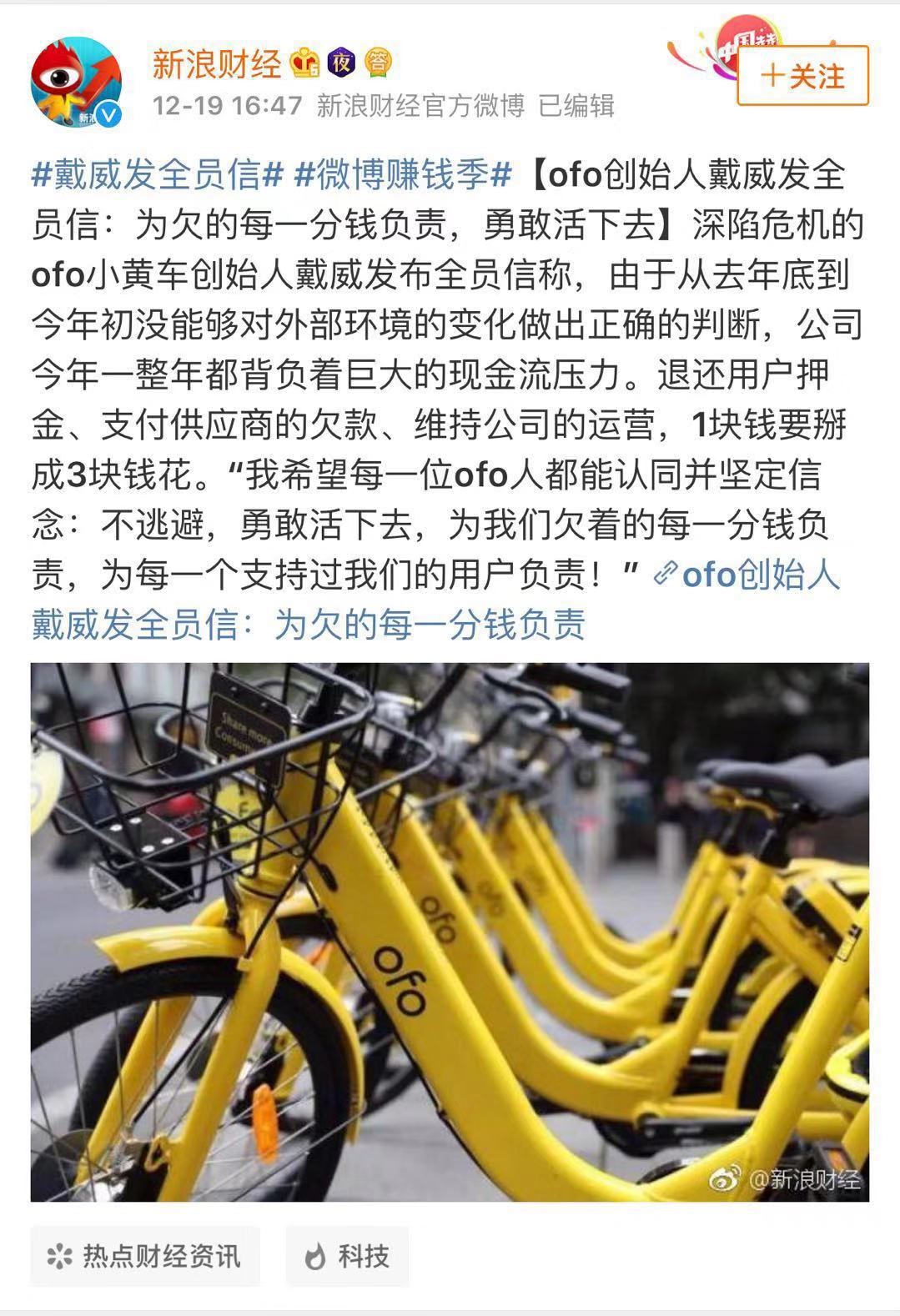 對此,戴威表示:對欠的每一分錢負責