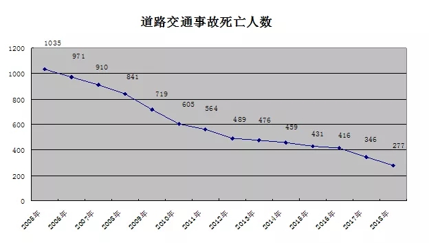 今年以來截止12月21日,我市的道路交通事故死亡人數(shù)實(shí)現(xiàn)了17.31%的大幅下降,預(yù)計(jì)全年全市道路交通事故死亡總?cè)藬?shù)將低于300人,在全市機(jī)動車保有量繼續(xù)增長的情況下,預(yù)計(jì)年萬車事故死亡率約為0.9左右。