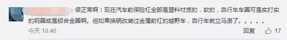 還有有不少網友指出,"很正常?。‖F在汽車前保險杠全部是塑料材質的,軟的,自行車車圈可是實打實的鋼圈或是鋁合金圈啊。但如果換輛改裝過金屬前杠的越野車,自行車就立馬廢了""如果把這些拿來冷嘲熱諷,鼓勵所有汽車制造商弄成實打實的硬鐵,那么發(fā)生碰撞的時候就笑不出了""對一個局部點進行沖擊。力度是非常大的,換其他大部分車都一樣"。