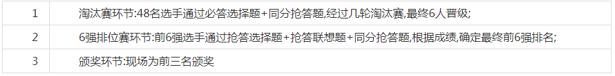 你熟悉改革開放的相關知識嗎? 你了解深圳這個改革開放窗口城市嗎? 你關注深圳特區(qū)的發(fā)展歷程嗎? 你知道深圳各大地標嗎? …… 只要你有興趣 歡迎報名參加我們將選取 活動現(xiàn)場還有驚喜大禮等你哦大家千萬別錯過喲! 第一名將獲得華為P20手機一部 圖片來源:華為官方旗艦店 前6強選手將獲得豐厚獎品哦! 競賽流程 競賽規(guī)則 淘汰賽獎勵和規(guī)則 【獎勵】本次知識競賽共有七輪淘汰賽,將從48名參賽選手中,選出6位選手晉級排位賽。48名參選選手均將獲得手繪深圳景色明信片,6強選手都將獲得獎品。 【規(guī)則】淘汰賽中,所有選手都兩兩PK答題,號碼牌數(shù)字由選手自己盲選,號碼牌接近的兩人自動互為PK對手(1號牌 PK2號牌、3號牌 PK4號牌……依次對應PK)。題目皆為選擇題,答案有A、B、C三個,選手要從中選出正確答案。誰答對的多誰贏,同分再搶答一題定勝負,輸?shù)囊环阶詣犹蕴?/p> 排位賽規(guī)則 【總規(guī)則】所有選手都將分到一個搶答器,初始得分都為100分,比賽過程中選手們進行搶答,答對得20分,答錯扣10分,提前搶答扣10分,每題答題時間10秒,答題超時扣10分。 排位賽共有20道搶答題,其中10題為選擇題,10題為聯(lián)想題: 【選擇題規(guī)則】選擇題答案有A、B、C三個,選手要從中選出正確答案,參賽選手必須在主持人喊出“開始”后,才可搶答,提前搶答扣分; 【聯(lián)想題規(guī)則】聯(lián)想題的每一道題的答案都是一個專有名詞,每道題目主持人會用較慢速描述該名詞開始,選手從主持人的描述中獲取線索,猜出答案,選手可隨時搶答。答對一題得20分,答錯扣10分。 了解清楚比賽流程和規(guī)則之后, 是不是想趕緊報名呢? 那么,具體如何參與呢? 報名方式 1、掃描下方二維碼進入原文留言,回復“報名+姓名+電話”; 2、回復截止時間至2019年1月3日。如若報名成功,將會收到我們的回復通知; 3、本次活動免費報名,活動解釋權歸深圳發(fā)布廳所有。 期待你的參與! 快快報名吧! 內(nèi)容來源:深圳發(fā)布 如需轉(zhuǎn)載,請注明以上內(nèi)容