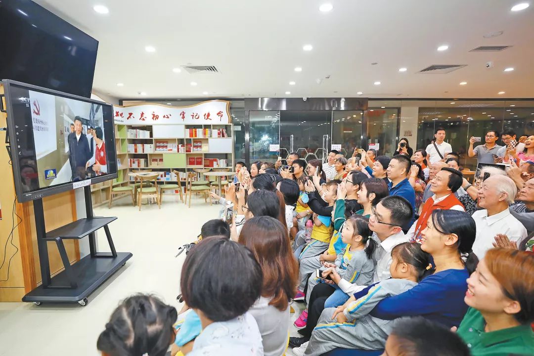 社區(qū)群眾在深圳北站黨群服務中心觀看習近平總書記在廣東視察的新聞。