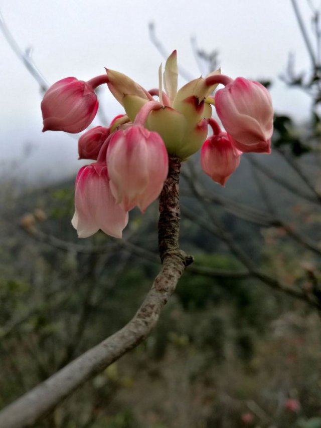 "這種花的特別之處在于先開花,后長葉。"梧桐山風景區(qū)管理人員介紹,吊鐘花開花的順序也十分有趣。枝頭小小如嫩筍般的就是它的花苞。當"嫩筍"每一片包片的邊緣開始變成紅色,"嫩筍"的頂部就開始綻開,第一朵風鈴狀的小花從"筍"尖"破繭而出"。待第一朵花長好后,其他花方才陸續(xù)相繼開放。