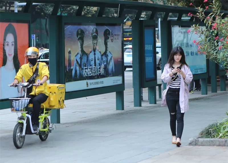為擴大反詐騙宣傳力度,福田警方充分發(fā)揮媒體效應(yīng),邀請深圳電視臺著名主持人為福田反信息詐騙宣傳代言,拍攝反詐案例回顧、反詐宣傳公益片等,在深圳各電視頻道、地鐵、公交、大型商圈LED屏幕、社區(qū)充電站廣告屏及歌舞、桑拿、酒店等場所移動電視滾動播出,隨時隨地提醒市民防范。同時,福田警方還與深圳地鐵媒體公司合作,在地鐵站設(shè)置反詐騙宣傳框架告144 塊,在轄區(qū)30個重點公交站臺告牌投放宣傳海報,在“福田警察”、“福田反詐騙”微信公眾號推送防范文章190篇。