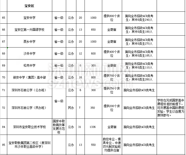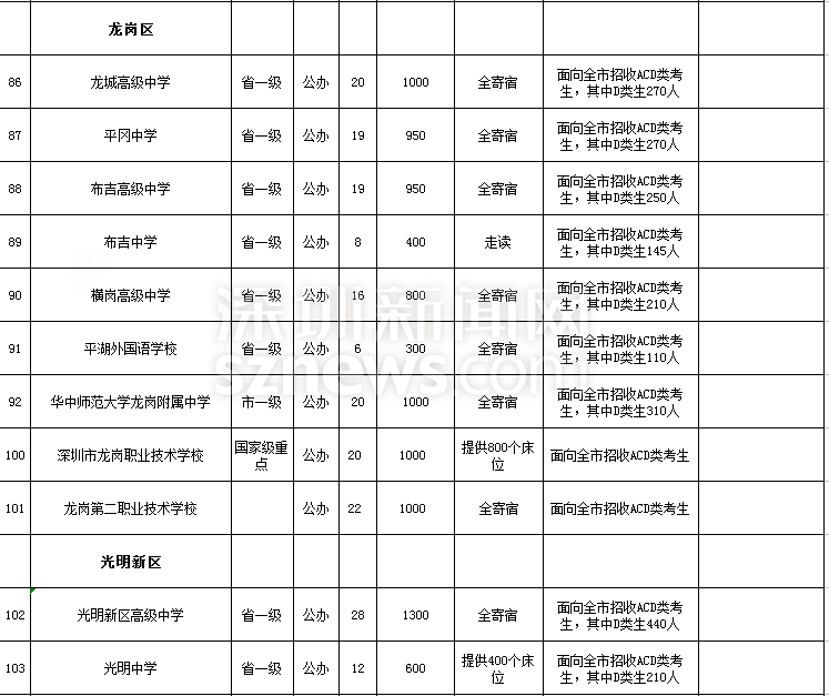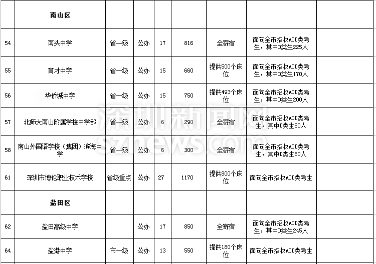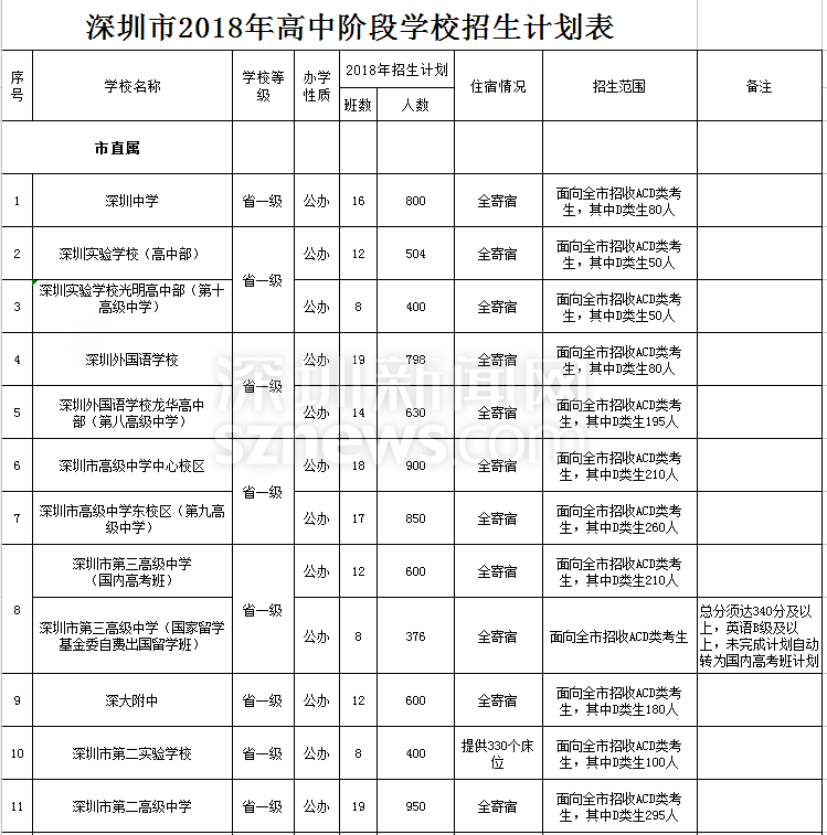 深圳市2018年高中階段學(xué)校招生計(jì)劃表