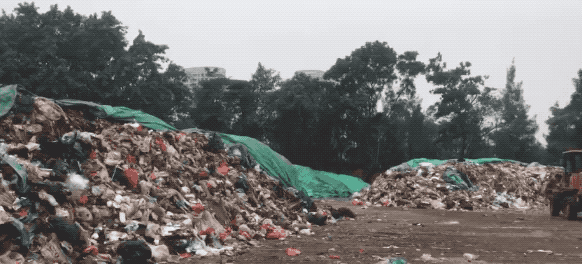 一位正在用帆布遮蓋垃圾的工作人員表示,這里堆放的垃圾全部來自大浪街道轄區(qū)內(nèi)的生活垃圾。據(jù)他了解,他們公司每天會運(yùn)送9車?yán)?一車可運(yùn)來十多噸。