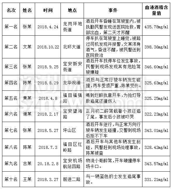 此外,新聞發(fā)布會上還通報了2018年十個查處酒駕的典型案例,其中位列首位的“虎王”張某血液酒精含量高達435.78mg/100ml,是危險駕駛標(biāo)準(zhǔn)的5倍多,也是2018年血檢數(shù)值最高的醉駕嫌疑人。