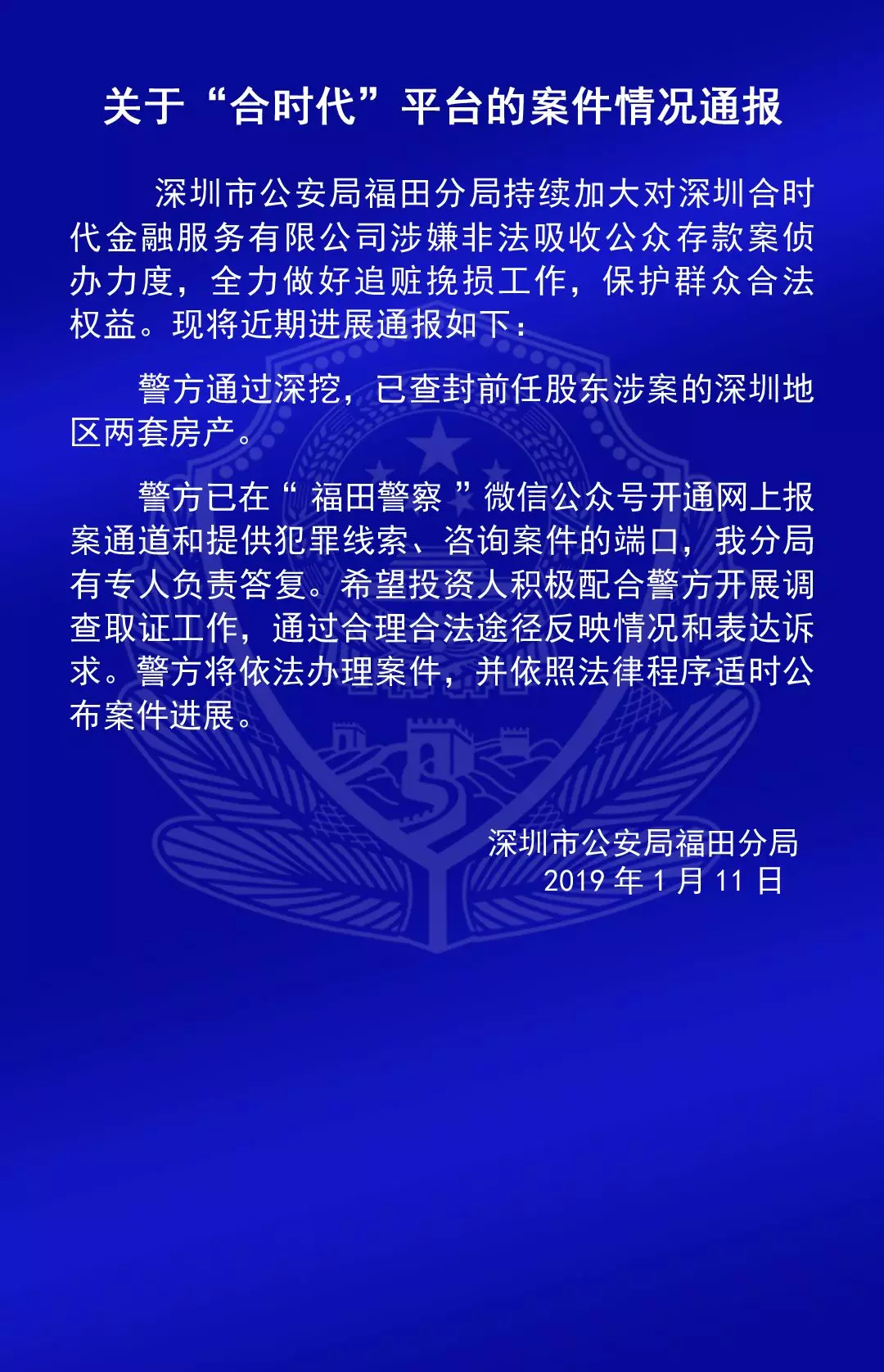 福田公安通報六家平臺涉嫌非法吸收公眾存款案的情況