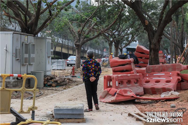 福田僑香路是人大代表?xiàng)钋谡{(diào)研的第二個(gè)點(diǎn),從現(xiàn)場(chǎng)可以看到,目前僑香路人行道正在進(jìn)行施工,不少大型機(jī)械正在作業(yè),發(fā)出陣陣轟鳴聲,來往行人只能繞道。