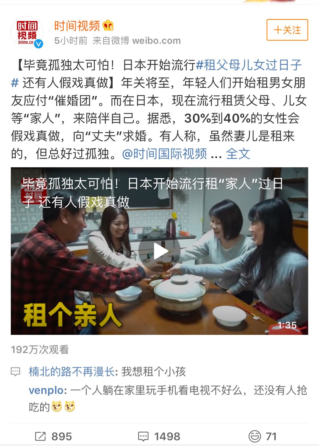 最近,日本流行租父母兒女過日子了