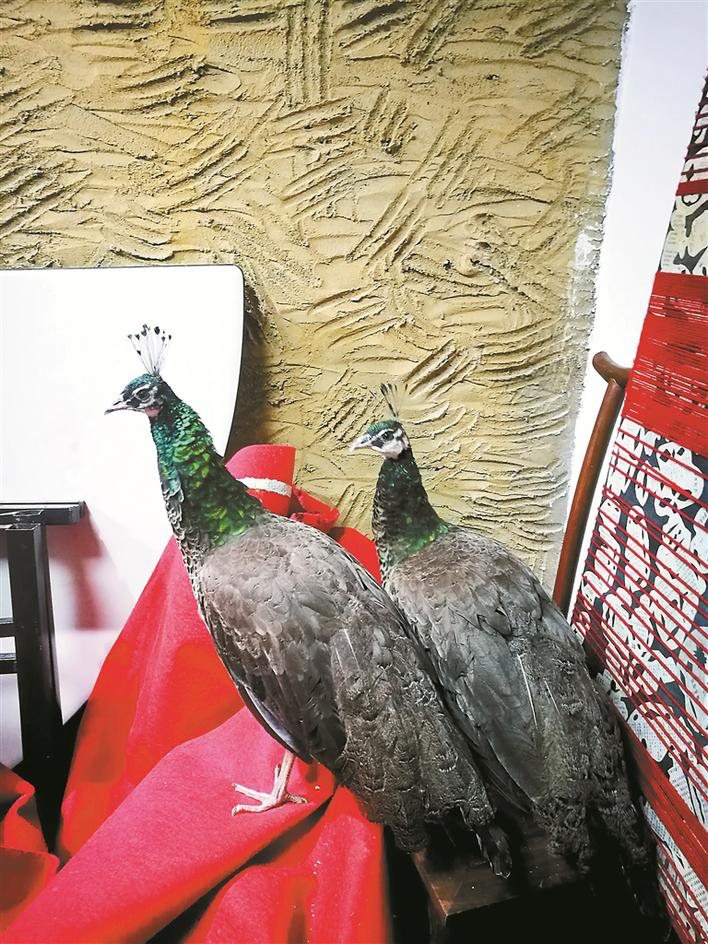 ▲南山一家公司露臺(tái)飛來兩只大孔雀。深圳晚報(bào)見習(xí)記者葉洋特?cái)z
