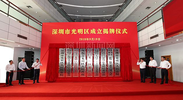 2018年9月19日,光明區(qū)正式揭牌成立。這是繼2016年10月,國務(wù)院批復(fù)同意設(shè)立龍華、坪山區(qū)之后,深圳又一個獲批的行政區(qū),也是深圳第九個行政區(qū)。
