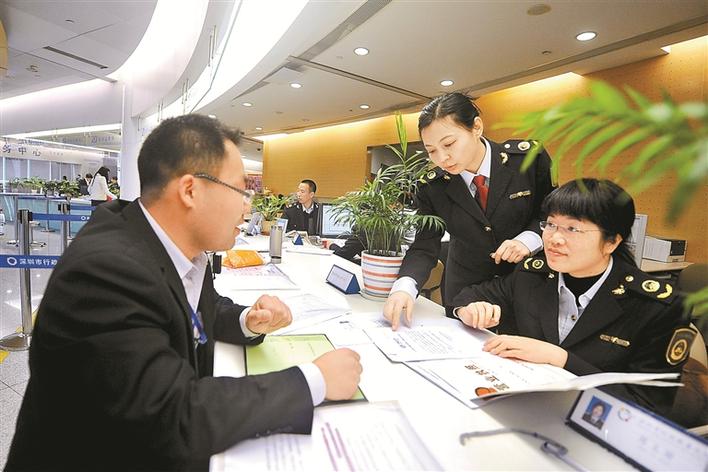 深圳在商事登記改革中推出“30證合一”信息共享模式,市民辦事更加便利。圖為市行政服務(wù)大廳工作人員熱情為市民服務(wù)。深圳特區(qū)報記者何龍攝