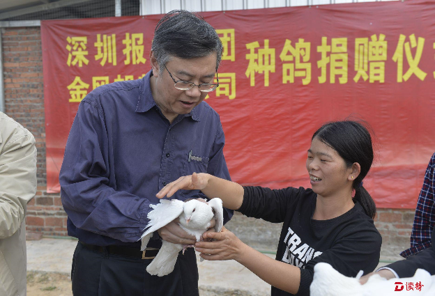 根據(jù)報(bào)業(yè)集團(tuán)“因戶制宜一戶一策”“一個(gè)黨支部結(jié)對一戶貧困戶”的安排,鐘仿明選擇養(yǎng)鴿脫貧,兩年多來,集團(tuán)金風(fēng)帆物業(yè)公司共計(jì)為他送來四批480對種鴿,還請來深圳光明農(nóng)場的技術(shù)員,對他進(jìn)行技術(shù)培訓(xùn)?!?80對種鴿全部成活!”1月20日下午,看到親自來送種鴿的陳寅等報(bào)業(yè)集團(tuán)領(lǐng)導(dǎo),鐘仿明拿出一面錦旗,非常激動(dòng)地說:“感謝黨的好政策,感謝深圳報(bào)業(yè)集團(tuán)的真心幫扶!”