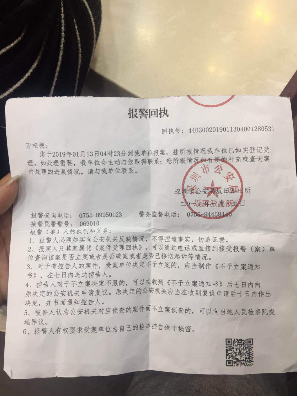 ▲報(bào)警回執(zhí)單