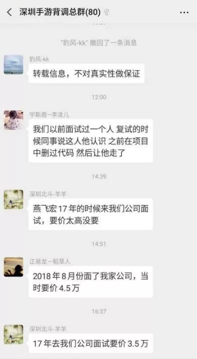 在公告發(fā)出當天,燕飛宏的名字迅速在深圳手游圈流傳開來。有從業(yè)者表示,“我在的幾個游戲行業(yè)招聘群都傳遍了”。在同行交流群里,還有從業(yè)者曝出他過往的“事跡”。