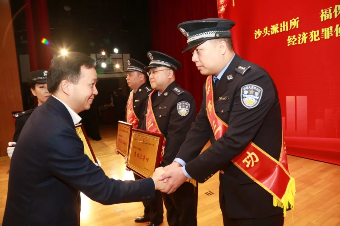 ▲副區(qū)長、公安分局局長段廷杰為嘉獎(jiǎng)集體頒獎(jiǎng)
