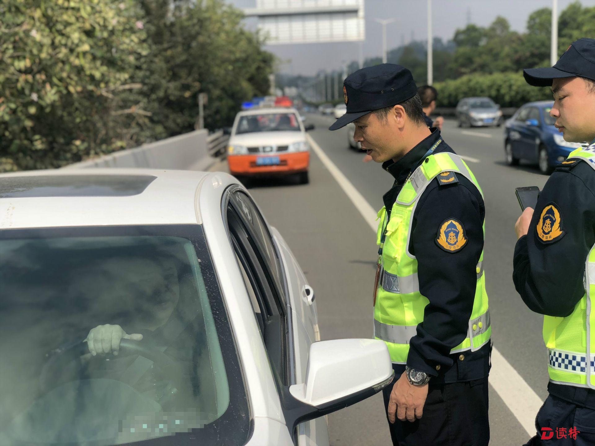 11:20,南光高速光明路段路邊應(yīng)急車道上,有一輛小車停靠。馬明海和開車的老林一起下車,走過去詢問。原來這輛小車爆胎了,正在等待維修廠送備胎過來。馬明海讓車內(nèi)司機(jī)和乘客趕緊下車,盡量往路邊站?!耙郧案咚俟飞铣鲞^這樣的事故,小車拋錨后,車主沒有下車,結(jié)果后面的車輛沒注意撞上來,車內(nèi)的人都沒了?!崩狭盅a(bǔ)充道:“下車后也不能站在車前或車后,這些位置都很危險(xiǎn),最好站到高速護(hù)欄的外面去等待救援?!笨吹綊佸^車輛后面只放了一個(gè)很小的三角架,馬明?;氐窖矙z車上,拿下來兩個(gè)反光錐放到小車后:“一定要讓其他車輛能很遠(yuǎn)就看到這里有車輛停靠,千萬不能發(fā)生二次事故?!?/p>
