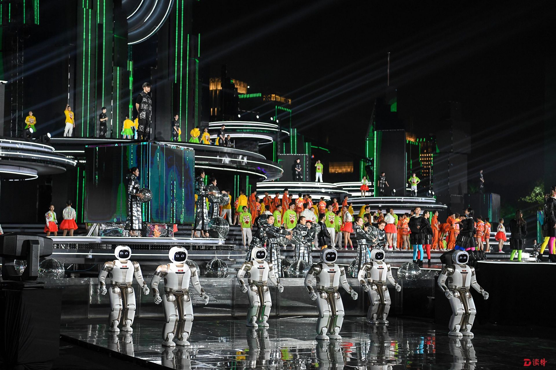 “可以說深圳分會場的每一個節(jié)目都貫穿了科技元素?!北热缥枧_上最新型的跳舞機器人、機械臂,演員衣服上嵌入的柔性屏,還有無人機、撲翼飛行器、云軌、云巴等等。晚會還使用了非常多的AR(增強現(xiàn)實)技術,在屏幕上把虛擬世界套在現(xiàn)實世界并進行互動,虛實結(jié)合呈現(xiàn)出十足的“夢幻”之感。