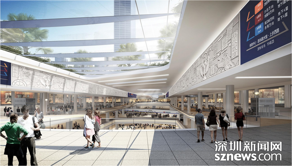 在此過程中,項目結合城市更新,以軌道交通為核心,通過5個軸帶有效連接體育中心、市二醫(yī)院、華富村、華強北商業(yè)街、筆架山公園、中心公園等多個城市區(qū)域,形成集多種功能為一體的綜合型城市地下空間新典范。