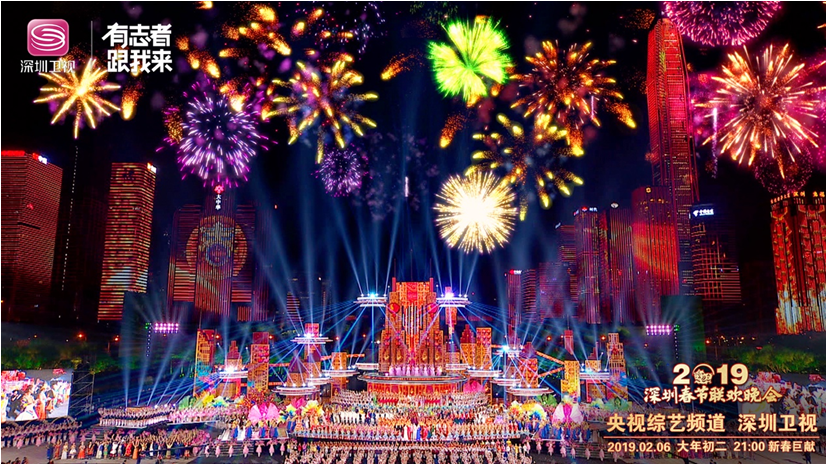 除夕之夜“深圳七分鐘”驚艷世人。晚會以天地為幕、城市為景,把43棟樓宇燈光秀與主舞臺的視頻效果完美融合,從而呈現出“春晚小舞臺,城市大舞臺”的震撼效果,將深圳這座城市的都市化、國際化氣質展現得淋漓盡致。