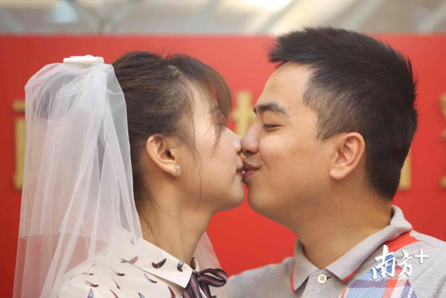 我們結(jié)婚啦!2月14日情人節(jié),一大早,深圳市羅湖區(qū)民政局婚姻登記處迎來許多對新人前來登記結(jié)婚。頒發(fā)證件、許下諾言、親密相吻……一對接一對的新人完成莊重的儀式,留下甜蜜蜜的合影,浪漫的氣息彌漫整個(gè)空間。南方日報(bào)記者朱洪波攝影報(bào)道
