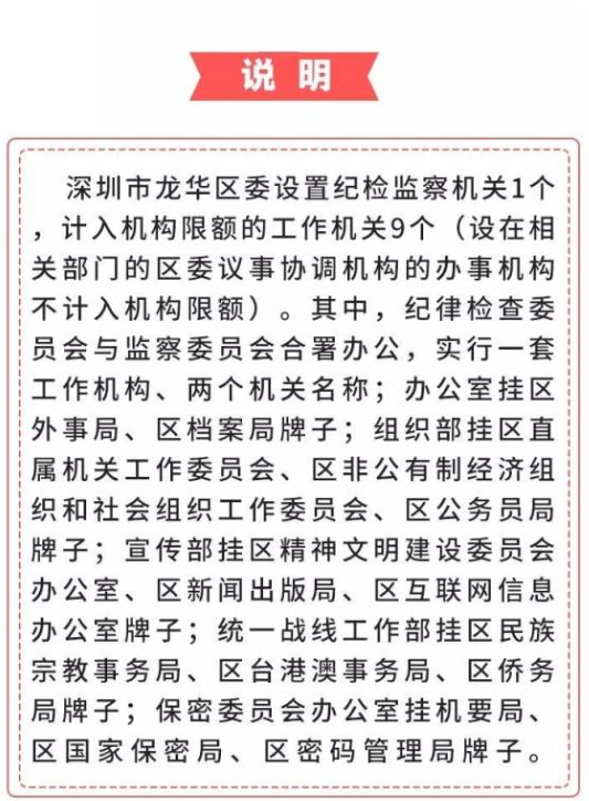 近日,《深圳市龍華區(qū)機(jī)構(gòu)改革方案》(以下簡稱“方案”)經(jīng)省委批準(zhǔn),以省委機(jī)構(gòu)編制委員會名義正式印發(fā)。2月14日,區(qū)委召開一屆六次全會,對全區(qū)深化機(jī)構(gòu)改革工作進(jìn)行動員部署,龍華區(qū)機(jī)構(gòu)改革工作進(jìn)入全面實施階段。