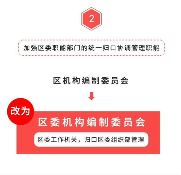 方案起草過程中,領(lǐng)導(dǎo)小組辦公室開展機(jī)構(gòu)編制評估和調(diào)查研究,摸清機(jī)構(gòu)編制底數(shù)和現(xiàn)狀,扎實做好基礎(chǔ)性工作。2019年1月16日,區(qū)委常委會審議通過了方案。1月28日,經(jīng)省委批準(zhǔn),方案以省委機(jī)構(gòu)編制委員會名義正式印發(fā)。