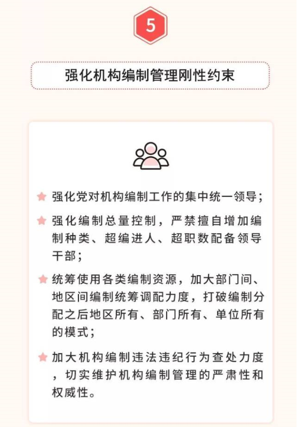 五是全面落實優(yōu)化協(xié)同高效原則。堅持一件事情原則上由一個部門負(fù)責(zé),把理順職責(zé)放在重要位置,從有利于突出主業(yè)、有利于服務(wù)管理的角度出發(fā),實事求是,科學(xué)設(shè)置黨委和政府機(jī)構(gòu),宜大則大、宜小則小,該加強(qiáng)的加強(qiáng)、該精簡的精簡、該優(yōu)化的優(yōu)化,實現(xiàn)機(jī)構(gòu)職責(zé)的深度融合。